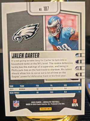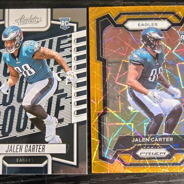 Jalen Carter- 2023 Panini Prizm Orange Lazer, Panini Absolute Rookie Eagles