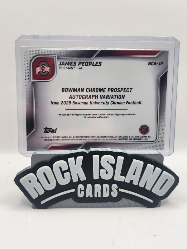 You are purchasing a James Peoples 2025 Bowman University Chrome Football #BCA-JP Gold Shimmer Auto 05/50. You will receive the exact item in the photographs. Thank you for looking.