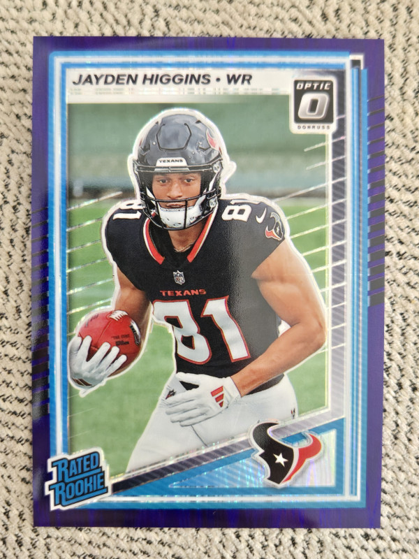 Jayden Higgins Donruss Optic Rated Rookie Purple Shock