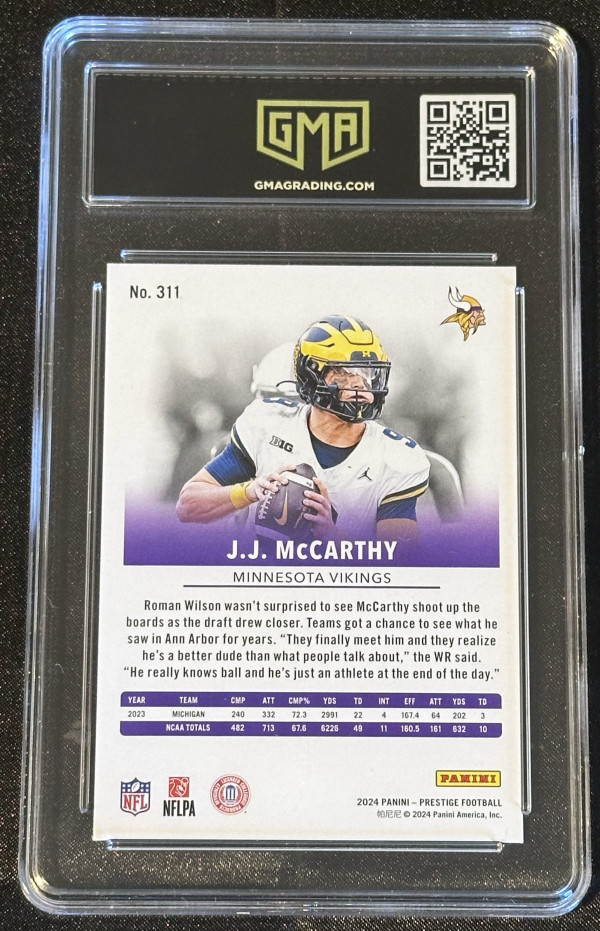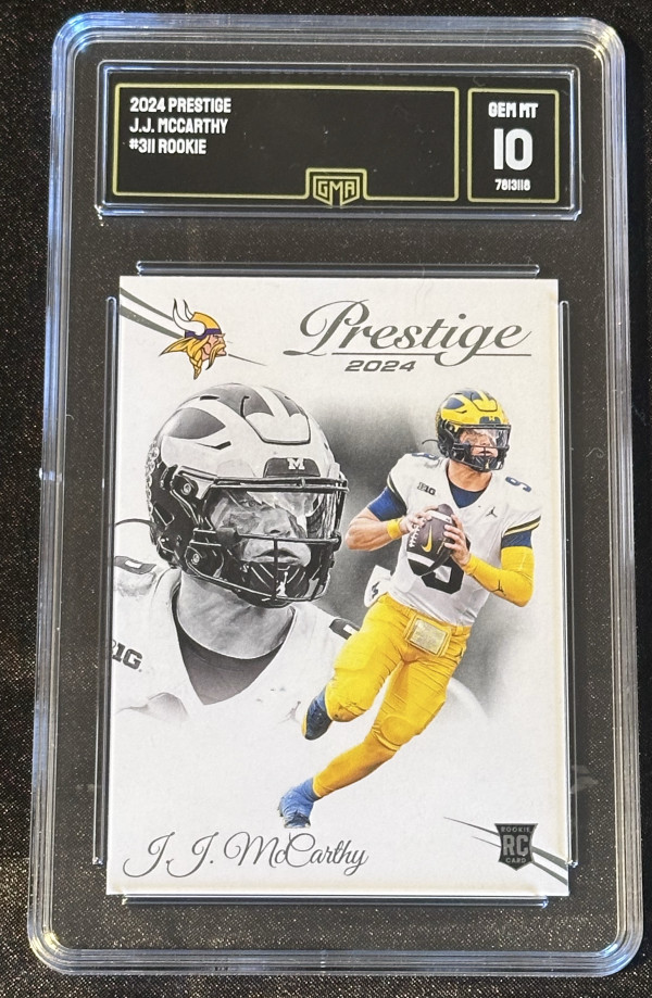 2024 Panini Prestige J.J. McCarthy rookie card in GEM Mint 10. Card #311