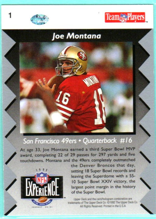 Joe Montana #1 | 1993 Upper Deck – NFL Experience