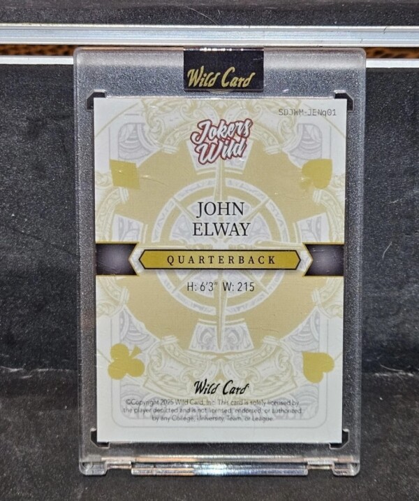 The John Elway 1/1 Wild Card Jokers Wild refers to a series of unique, one-of-a-kind sports trading cards from the 2025 Wild Card Joker's Wild set