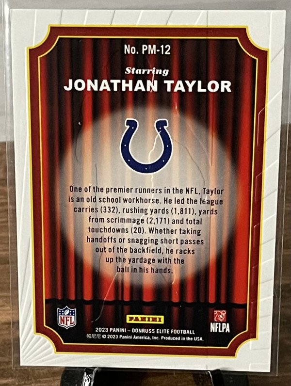 Jonathan Taylor 2/5 Gold 2023 Donruss Elite Playmakers Gold