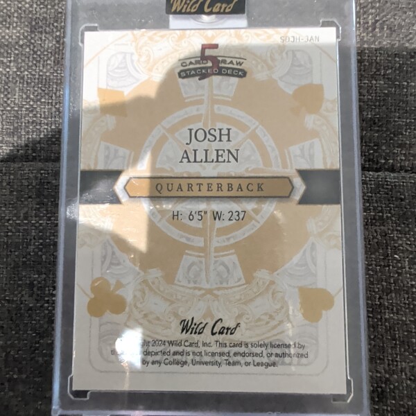 A beautiful one of one jacks Josh Allen quarterback five draw stacked deck. Enjoy it. Put it in your personal collection. Resell it whatever you want to do with it. It's up for sale