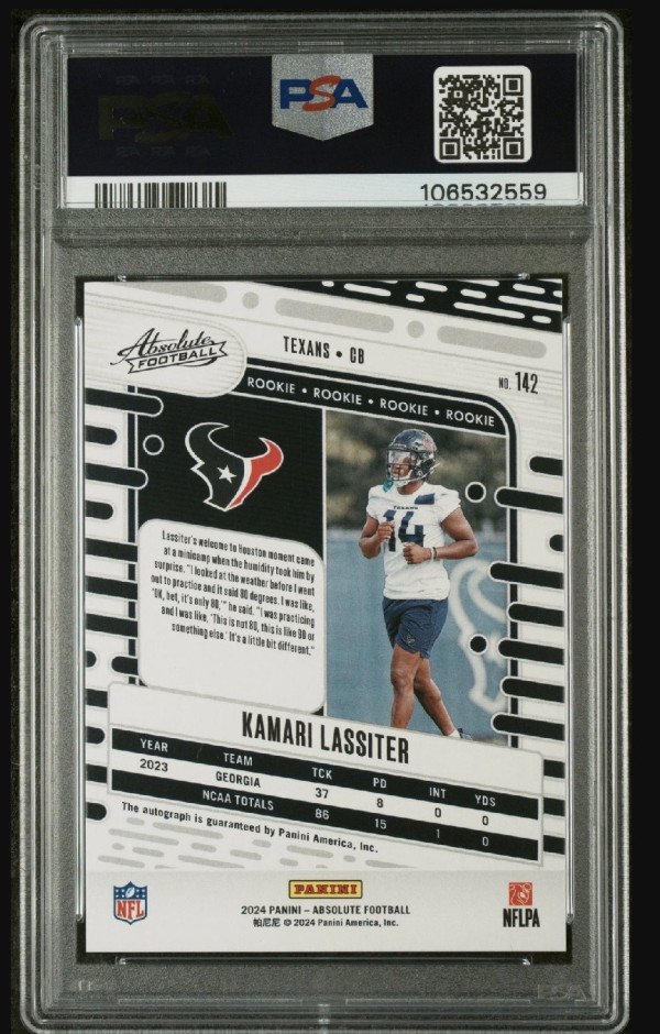 This is a Gold /10 rookie Kamari Lassiter auto graded a PSA 10. This is a very rare card and it’s a perfect pop 1!