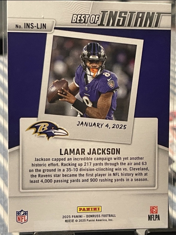 Lamar Jackson 2025 Donruss Football Best of Panini Instant Insert # INS-LJN