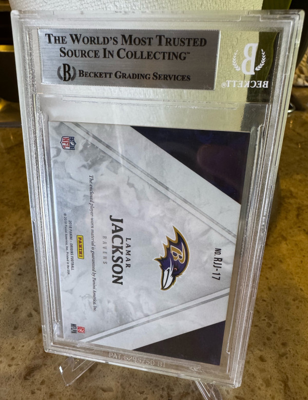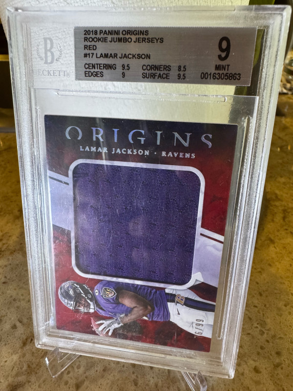 Beckett graded 9 of rookie Lamar Jackson jumbo jerseys red out of 99