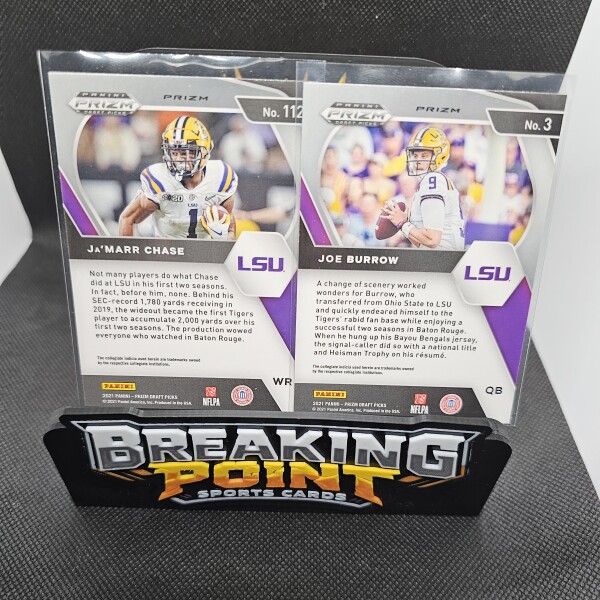 Joe Burrow 2021 Panini Prizm Draft Picks Green Prizm and Ja'Marr Chase RC 2021 Panini Prizm Draft Picks #112