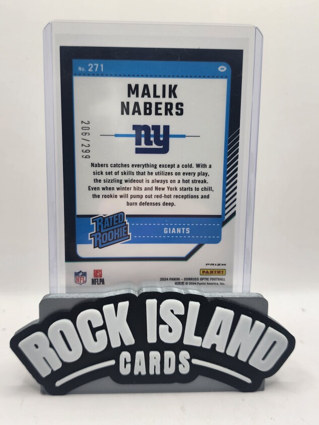 You are purchasing a Malik Nabers 2024 Panini Donruss Optic #271 Aqua Rated Rookie /299. You will receive the exact item in the photographs. Thank you for looking.