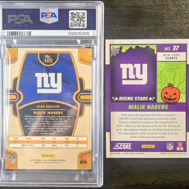 PSA 9 2024 Panini Gold Standard White Gold 10/65 #105 & 2024 Panini Score-A-Treat Pumpkin #37