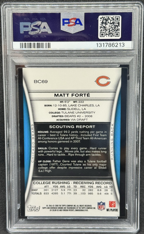 Matt Forte 2008 Bowman Chrome #BC69 Rookie (RC) PSA 8 - Bears