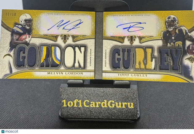 Up for grabs is a rare dual booklet card featuring two of the most electric running backs of the 2015 rookie class โ Melvin Gordon and Todd Gurley.