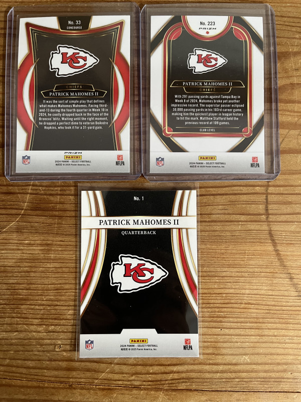 Patrick Mahomes 2024 Panini Select 3-card lot