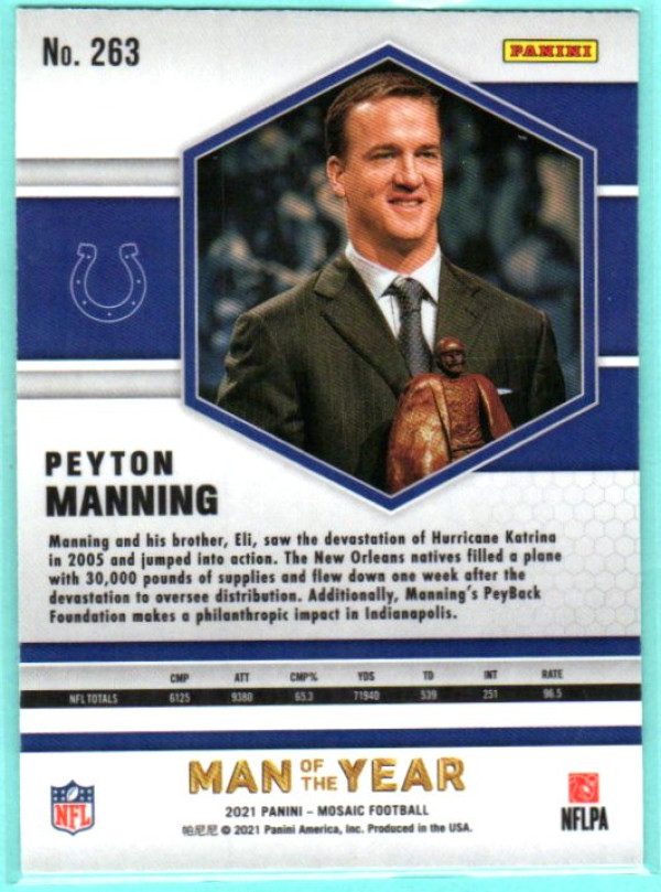 Peyton Manning #263 | 2021 Panini Mosaic Add a modern card of a true NFL legend to your collection with this Peyton Manning