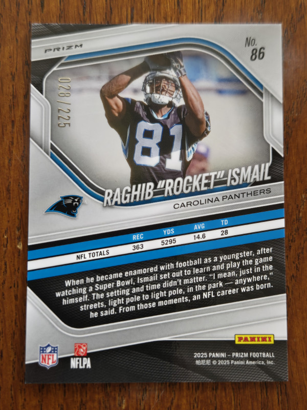 Raghib Ismail 2025 Panini Prizm Purple Cracked Ice /225