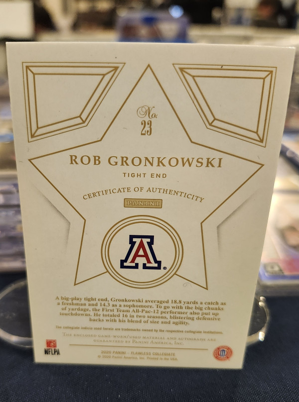 2020 FLAWLESS ROB GRONKOWSKI COLLEGIATE STAR SWATCH ON CARD AUTO /25.