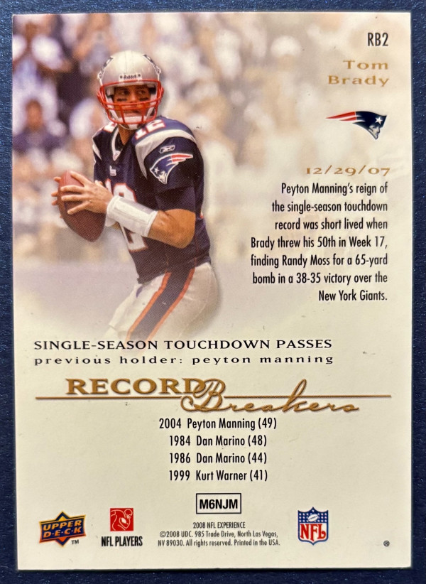 Tom Brady 2008 Upper Deck Record Breakers /700