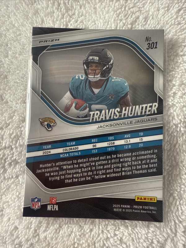 Travis Hunter 2025 Panini Prizm RC - White Disco