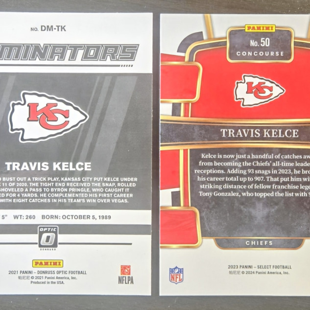 Travis Kelce - '21 Panini Donruss Optic Dominators & '23 Select Concourse Chiefs