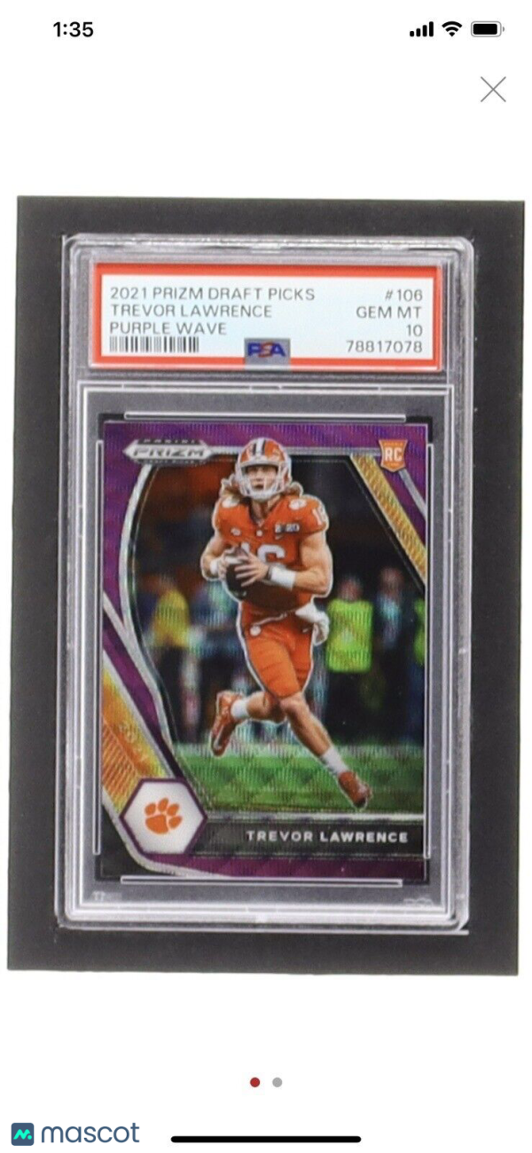Trevor Lawrence 2021 Panini Prizm Draft Picks Prizms Purple Wave #106 RC (PSA . Condition is Graded. Shipped with USPS Ground Advantage. Listed with Mascot.