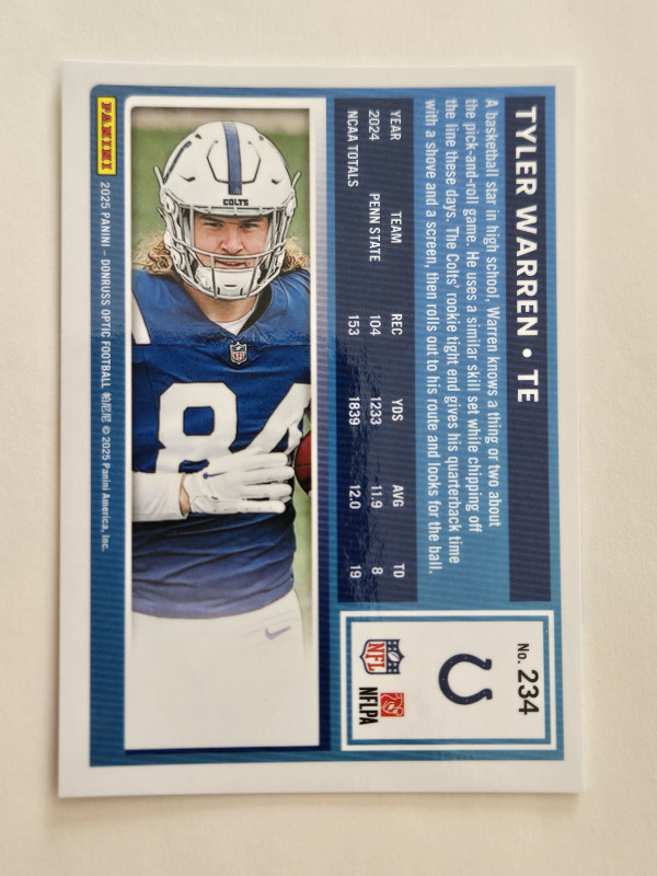 Tyler Warren Donruss Optic Rated Rookie Base