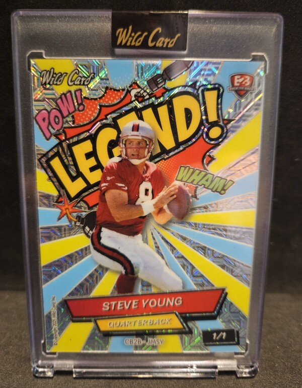 Very rare 1/1 back-to-back Wild Card comix Legend Steve Young and Joe Montana