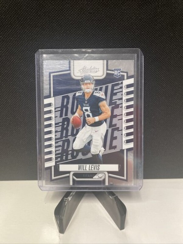 This is a Will Levis 2023 Panini Absolute #114 RC sports trading card. It features the rookie card of the Tennessee Titans player and is part of the base set. The card is made of card stock and is an original from the United States. It is not autographed and is a National Football League (NFL) licensed product. The card is perfect for collectors and fans of the sport.