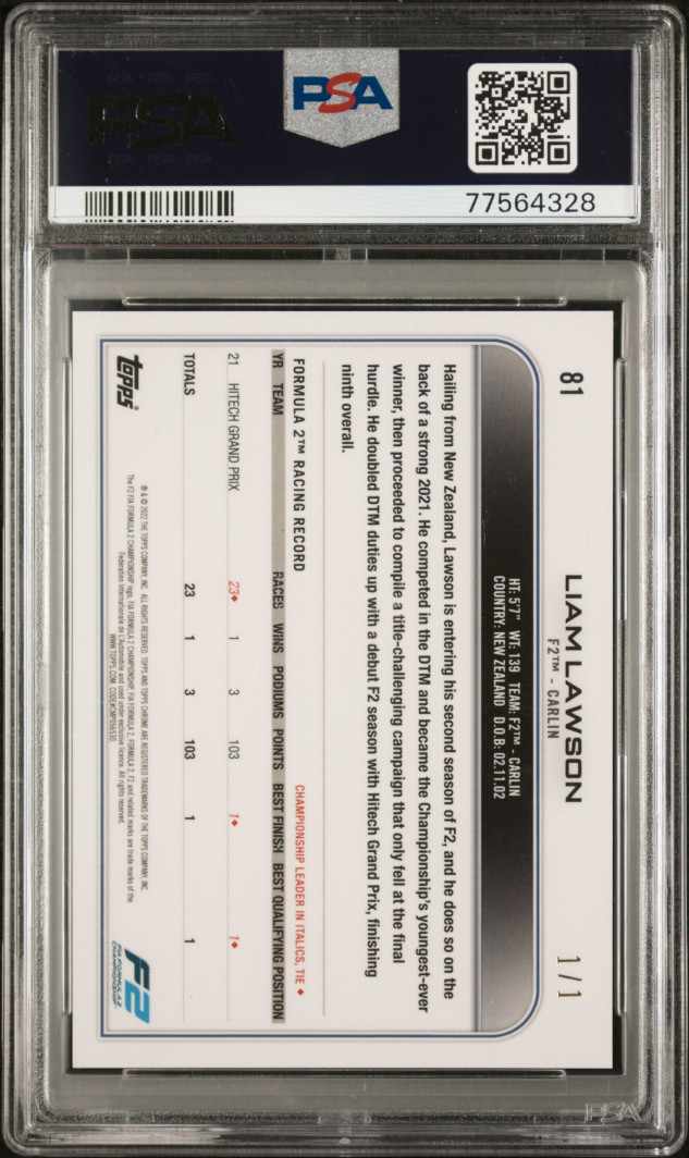 2022 Topps Chrome Formula 1 Sapphire Edition Liam Lawson Padparadscha 1/1