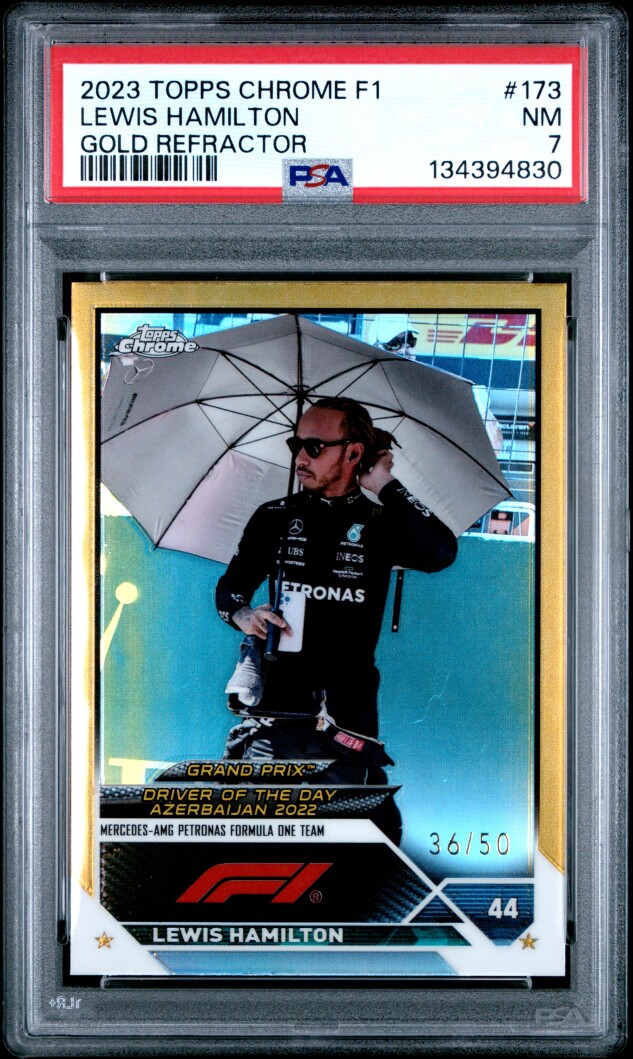 2023 Topps Chrome F1 Grand Prix Lewis Hamilton Gold Refractor /50 PSA 7 #173 Mercedes Benz Racing 🏎️ 36/50