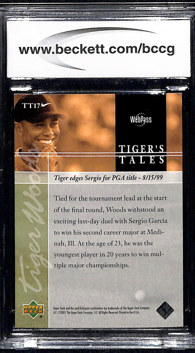 You are purchasing a 2001 Upper Deck Tiger's Tales Tiger Woods #TT17 BCCG. You will receive the exact card in the photographs. Thank you for looking.