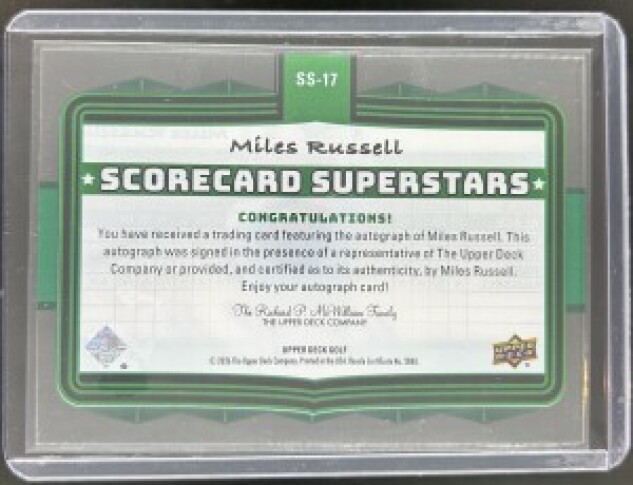Thanks for your looking at my listing 2026 Upper Deck Golf Miles Russell Auto Scorecard Superstars Acetate RC. Let me know if you have any questions!