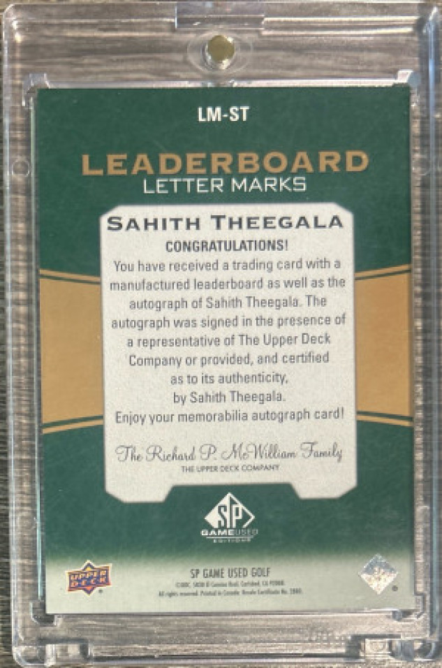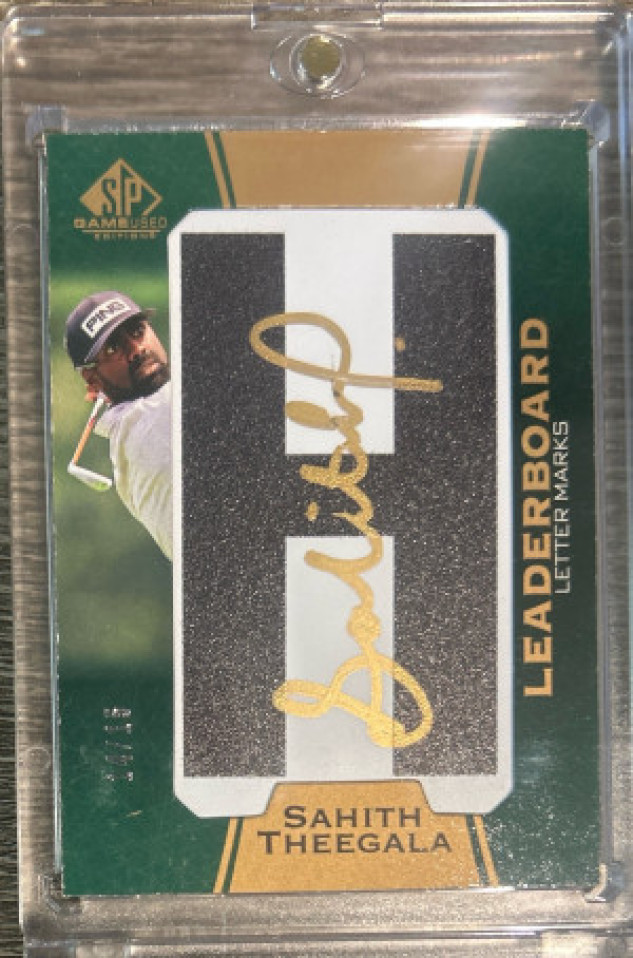 Sahith Theegala 2024 SP Game Used Leaderboard Letter Marks Autograph /15