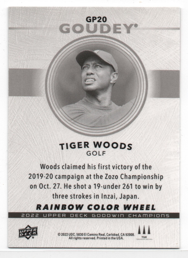 Tiger Woods - 2022 Upper Deck Goodwin Champions Goudey Platinum ePack Rainbow Color Wheel Parallel #GP20