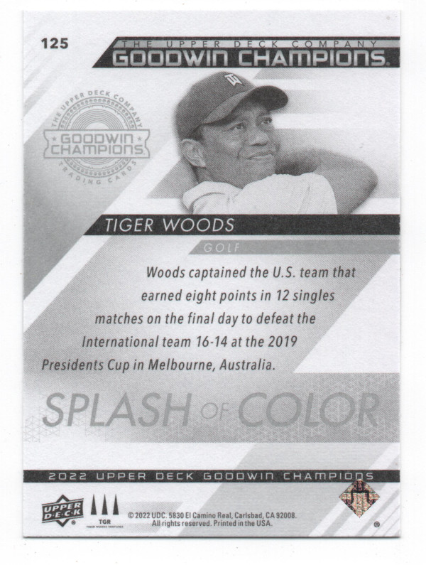 Tiger Woods - 2022 Upper Deck Goodwin Champions Splash of Color Black & White Variation #125