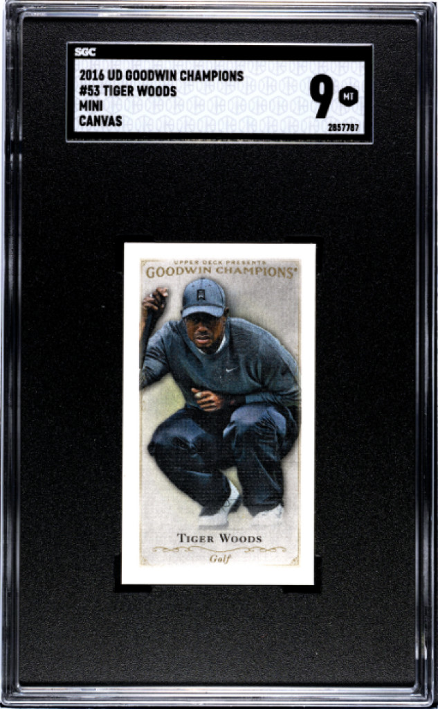 Tiger Woods - SGC 9 Mint - 2016 Upper Deck Goodwin Champions Canvas Minis #53