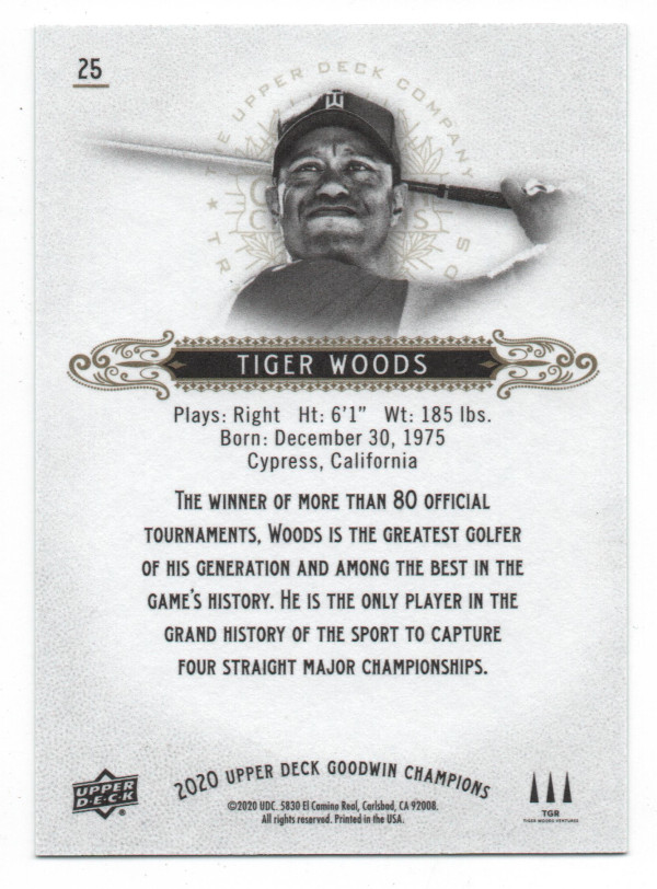 The Tiger is a parallel of the standard base, but #25 instead of #20 and identifies the card as 2020 instead of 2018.