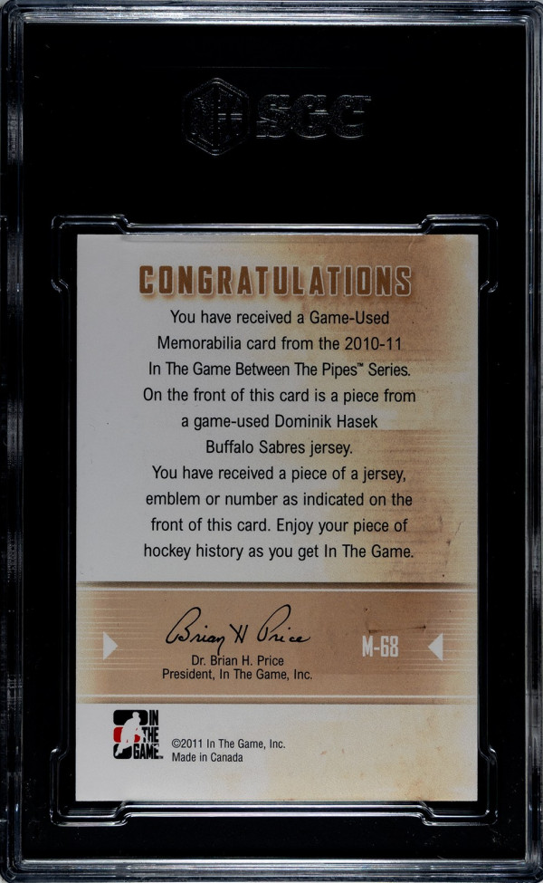10-11 I.t.g. Between The Pipes M-68 Dominik Hasek Game Used Jesery Silver Vault 1/1