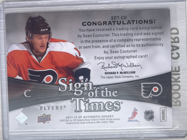 11-12 UD SP Authentic Sean Couturier Autograph Sign Of The Times Philadelphia