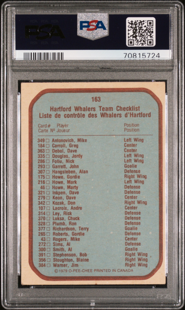 1979 O-Pee-Chee Whalers Emblem Checklist