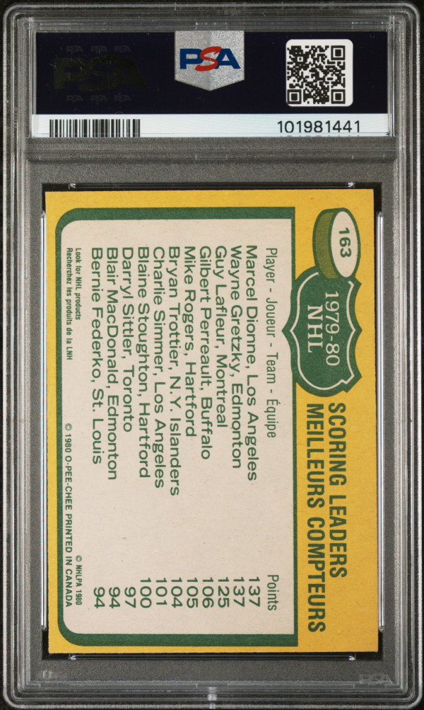 You are purchasing a 1980 O-Pee-Chee Scoring Leaders #163 PSA 6. You will receive the exact card in the photographs. Thank you for looking.
