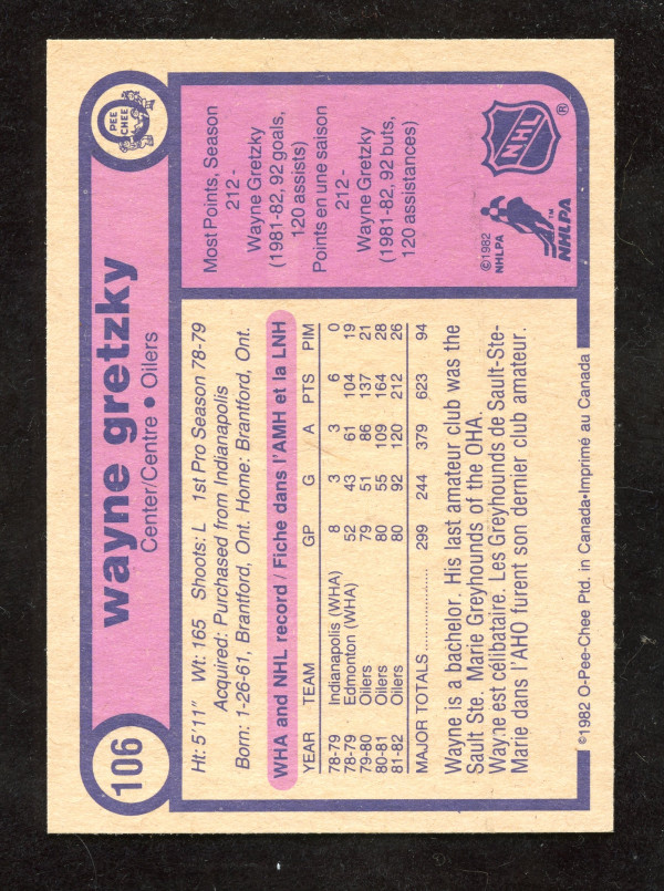1982 O-Pee-Chee #106 Wayne Gretzky MT