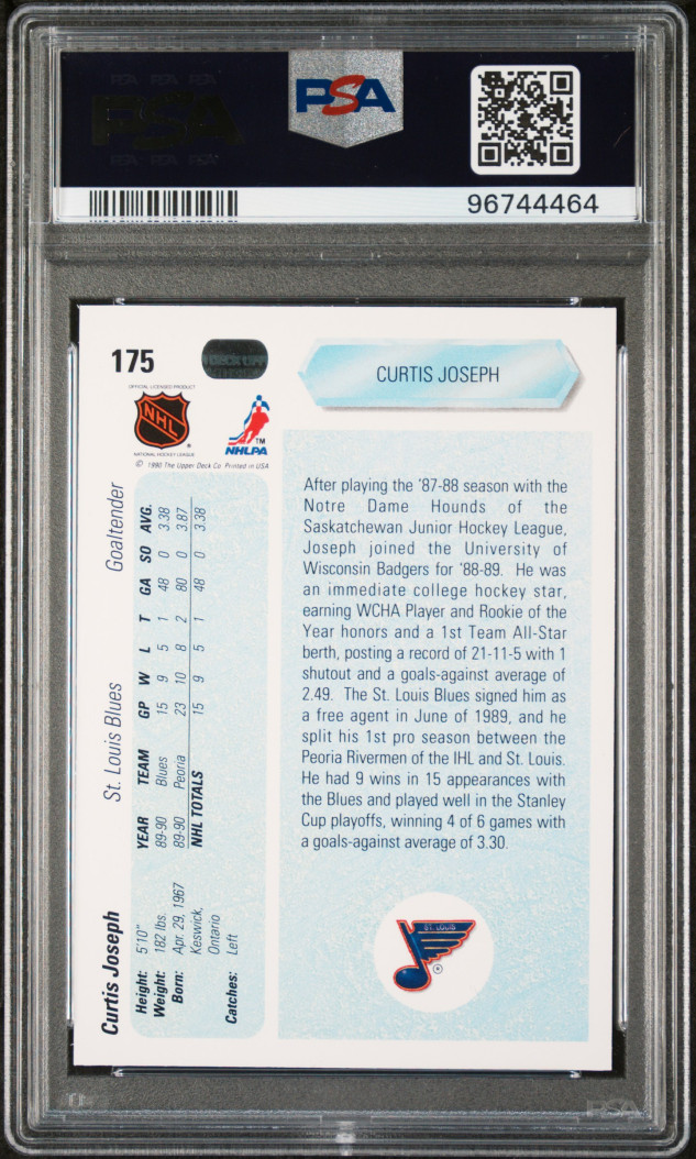 1990-91 Upper Deck Curtis Joseph Star Rookie RC #175 PSA 9 Mint Blues