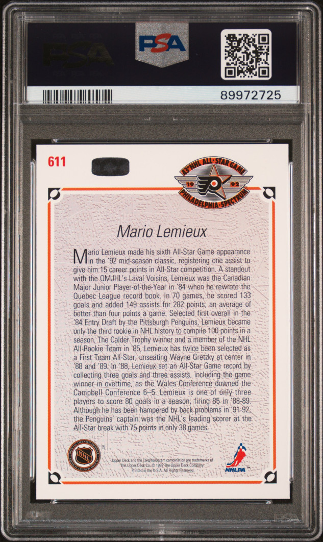 1991 Upper Deck Mario Lemieux All Star PSA 9 MINT Card #611