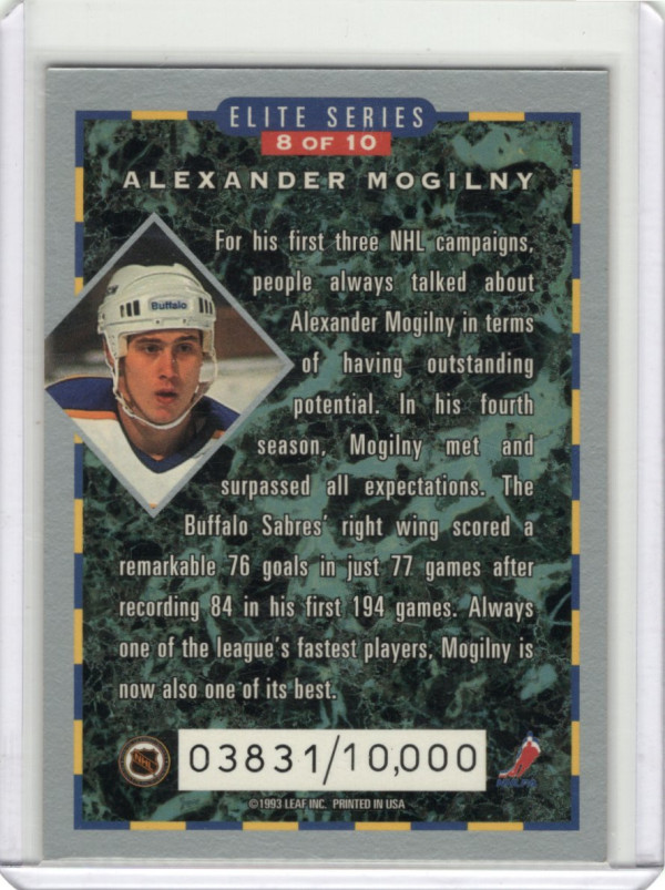 You are purchasing a 1993 Donruss Elite Series Alexander Mogilny #8 of 10. You will receive the exact item in the photographs. Thank you for looking.