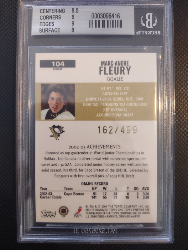 2003-04 Topps Pristine Refractor #104 Marc Andre Fleury /499