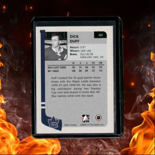 You are purchasing a 2004 In The Game Dick Duff Franchises Canadian #90. You will receive the exact item in the photographs. Thank you for looking.