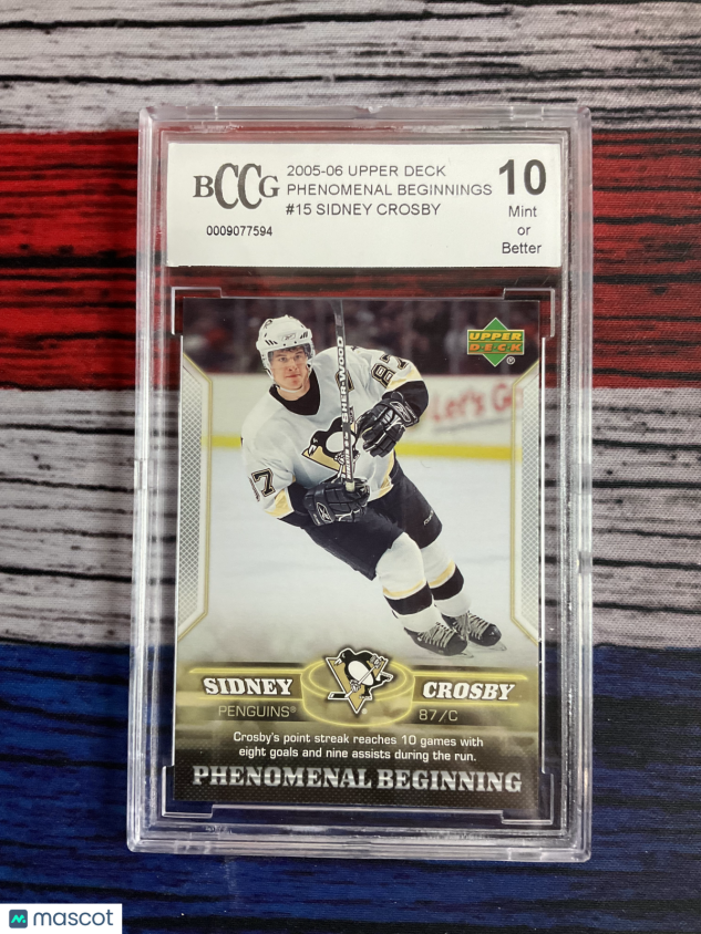 You are purchasing a 2005 Upper Deck Phenomenal Beginnings Sidney Crosby #15 BGS 10. You will receive the exact item in the photographs. Thank you for looking.