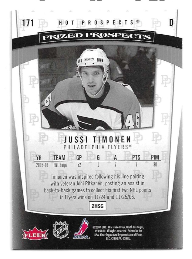 2006-07 HOT PROSPECTS #171 JUSSI TIMONEN (RC) (#1636/1999)