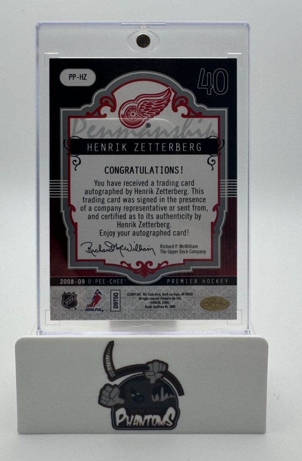 2008-09 OPC Premier Penmanship Henrik Zetterberg Autograph /100