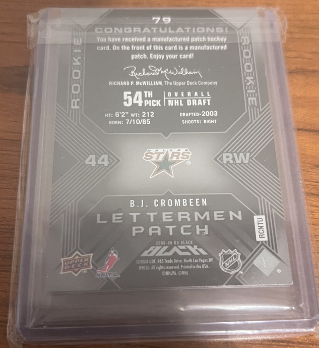 2008-09 Upper Deck UD Black Rookie Lettermen /399 BJ Crombeen #79 Dallas Stars Letter "M" **LOPSIDED TRADE OFFER PLEASE READ**